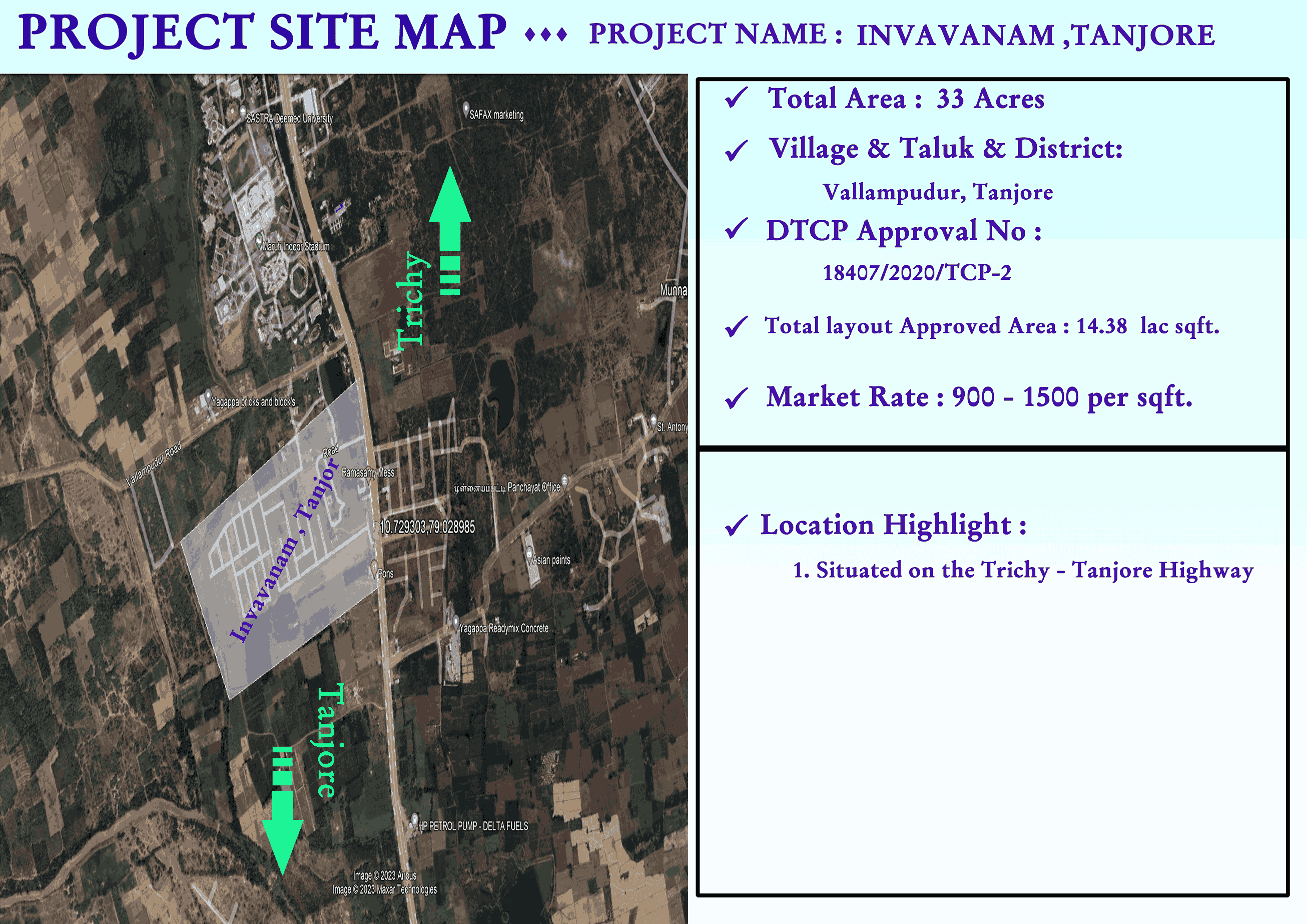 Step into a brighter future at Tanjavur Inbavanam by Neomax Projects. Perfectly located in Dindigul, this thoughtfully crafted residential community blends modern living, essential amenities, and peaceful surroundings—an ideal place to build your dream home and enjoy a quality lifestyle.